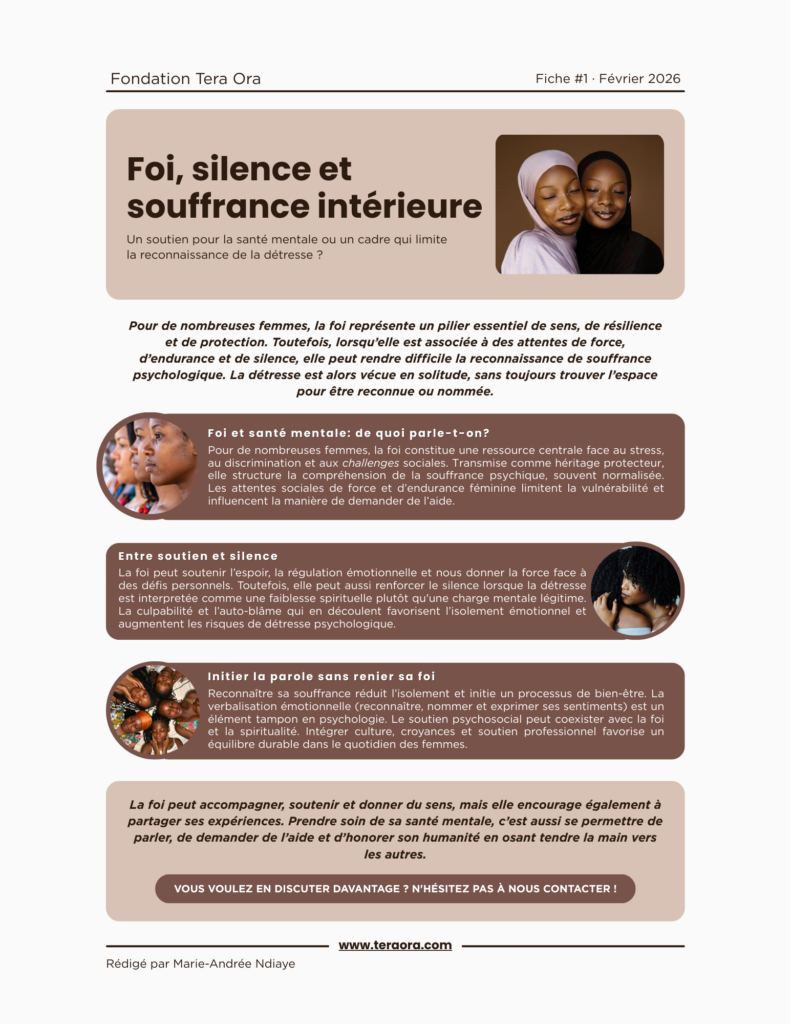 Conçue par la Fondation Tera Ora, cette fiche s’inscrit dans une démarche d’information, de sensibilisation et de soutien, sans jugement.